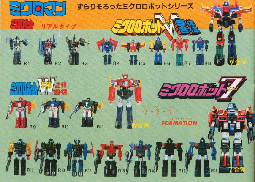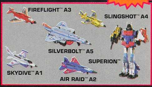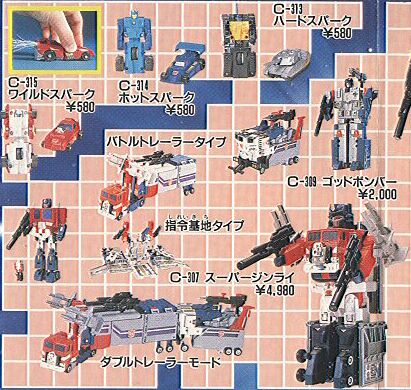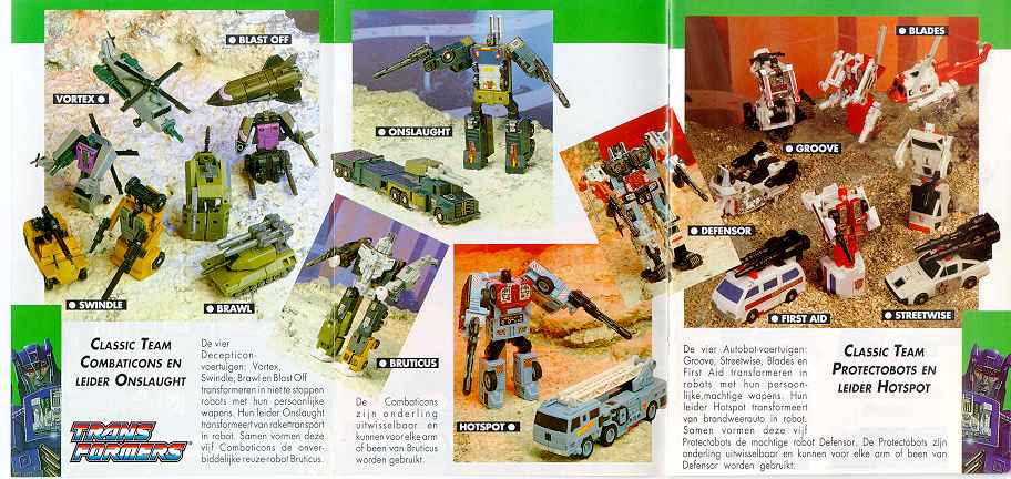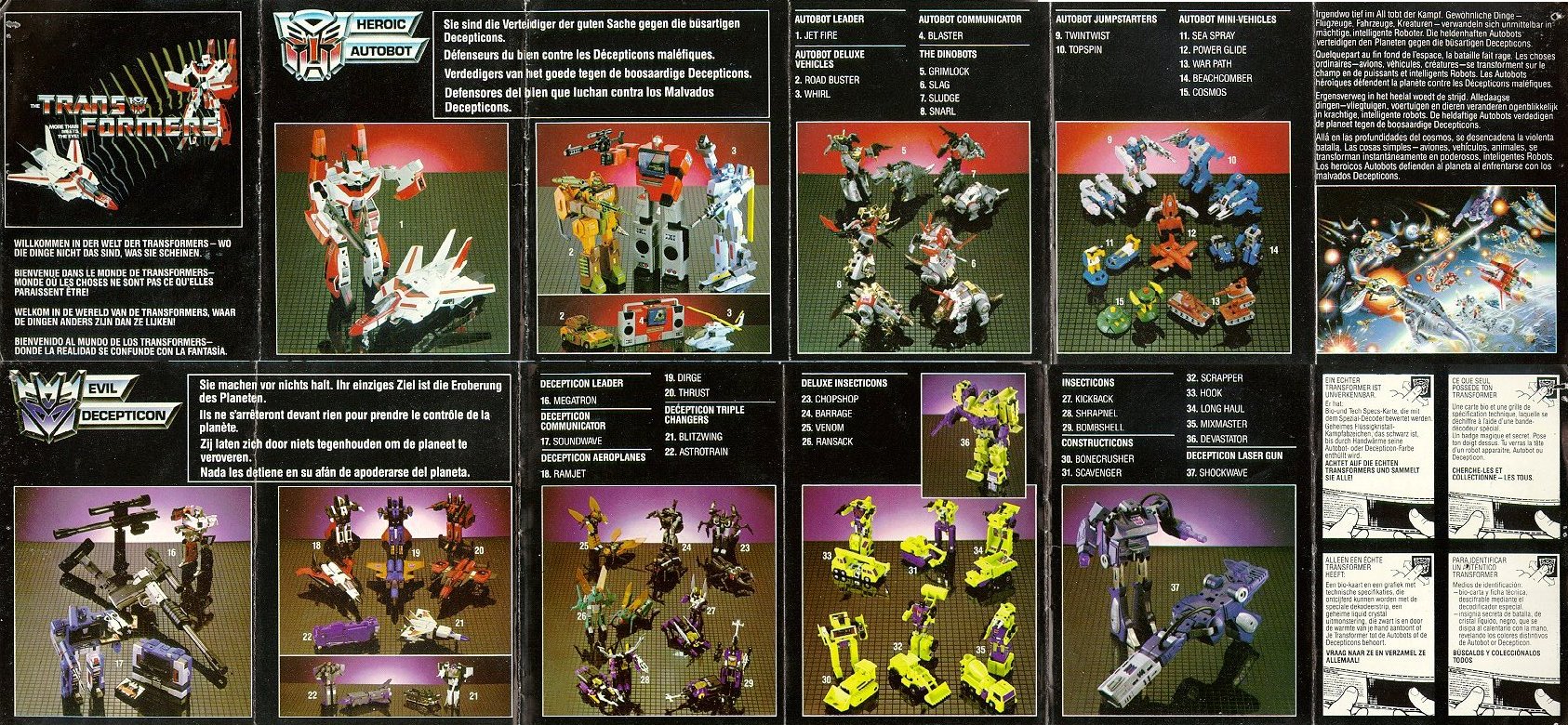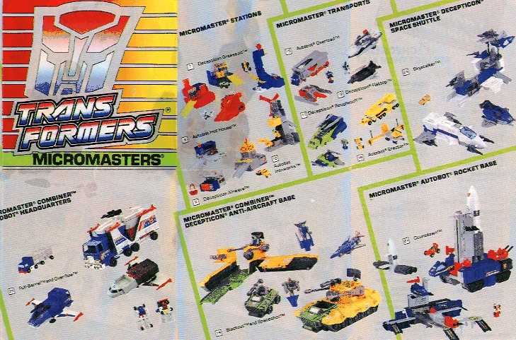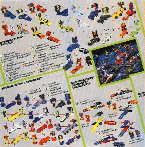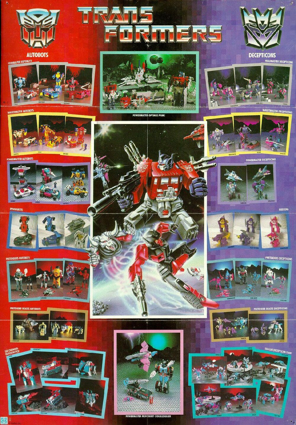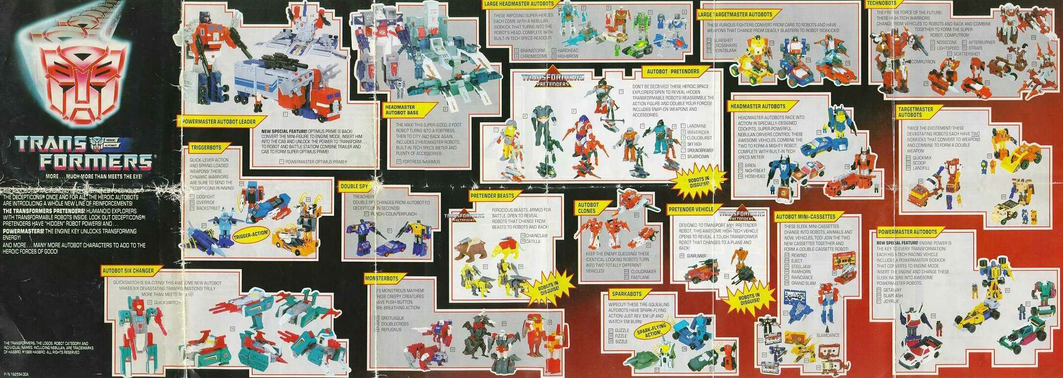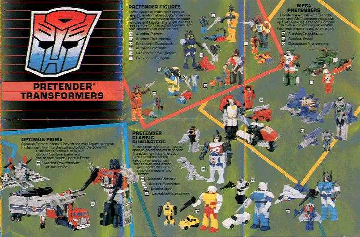 Autobots (Headmasters, Targetmasters, Powermasters, Pretenders, etc) e Decepticons (Headmasters, Targetmasters, Powermasters, Pretenders, Seacons, etc).