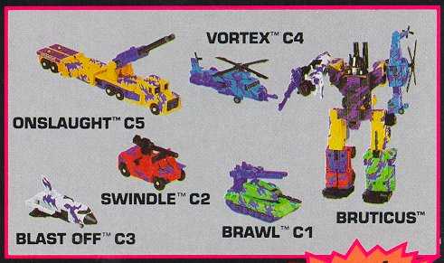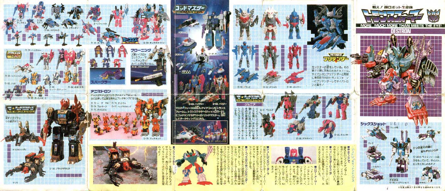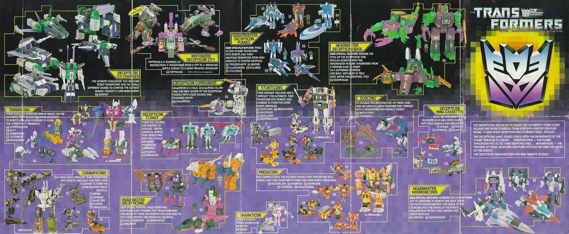 Decepticons (Sixshot, Terrorcons, Trypticon,Targetmasters, Scorponok, Stunticons, cassettes, Predacons, Combaticons, Headmasters, etc).