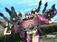 Depthcharge (Profundeza), inconformado com a decisão do Conselho, havia passado a monitorar a Protoforma X, na esperança de encontrá-la novamente e destruí-la. Com isso, ele acabou atravessando a passagem transwarp e caindo na Terra primitiva também. Mais tarde, para desgosto de Rampage, Megatron usa o pedaço da spark deste para dar vida a um clone transmetal 2 do Dinobot. Rampage foi finalmente destruído por DepthCharge (Profundeza) que, aproveitando-se de um "ferimento" aberto no peito dele, atinge sua spark com um cristal de energon. A explosão resultante acaba por destruir DephCharge também. |