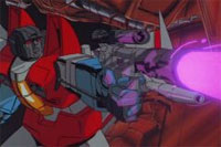 O "comandante aéreo" Starscream foi um dos Decepticons que caiu na Terra durante a invasão da Arca e era o segundo em comando dos Decepticons, sob as ordens de Megatron. Embora fosse um hábil guerreiro aéreo, não era muito corajoso. Inteligente, insolente, muito ambicioso e traiçoeiro, vivia tentando assumir o comando dos Decepticons. Durante a batalha em Autobot City (na Terra), no ano de 2005 (conforme "Transformers: O Filme"), Megatron foi seriamente avariado e, após a retirada dos Decepticons, Starscream o atirou no espaço e tomou seu lugar como líder dos Decepticons. Megatron, no entanto, reformado por Unicron, retornou (como Galvatron) durante a coroação de Starscream e o matou. Apesar do corpo de Starscream ter sido destruído, sua centelha ("spark") sobreviveu e ficou vagando no espaço à procura de vingança.