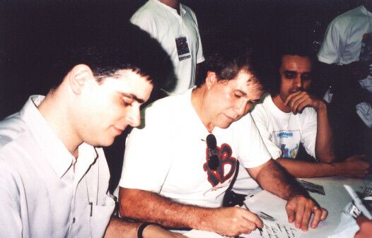 Guilherme Briggs (Optimus Primal "BM" e Optimus Prime "NG") e Celso Vasconcelos (Optimus Prime "TF") com a galera das mailing lists.